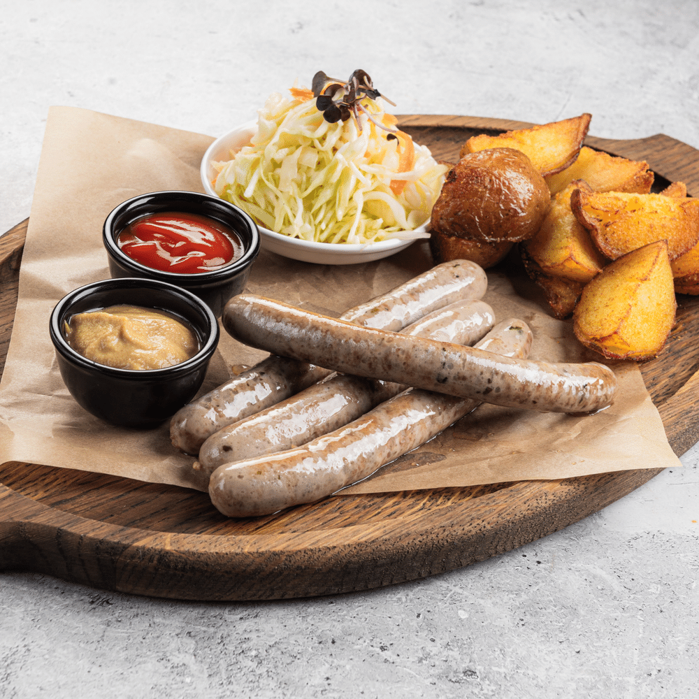 Говяжьи колбаски — сочные говяжьи и бараньи колбаски, поданные с хрустящим картофелем в деревенском стиле.