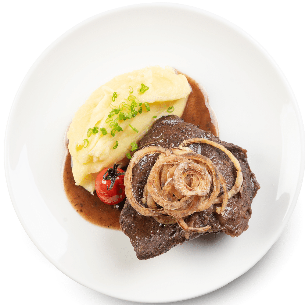 Томлёные говяжьи щечки с пюре LM — нежные, медленно томлёные щечки с бархатистым картофельным пюре. Сытно, изысканно и с богатым, насыщенным вкусом.